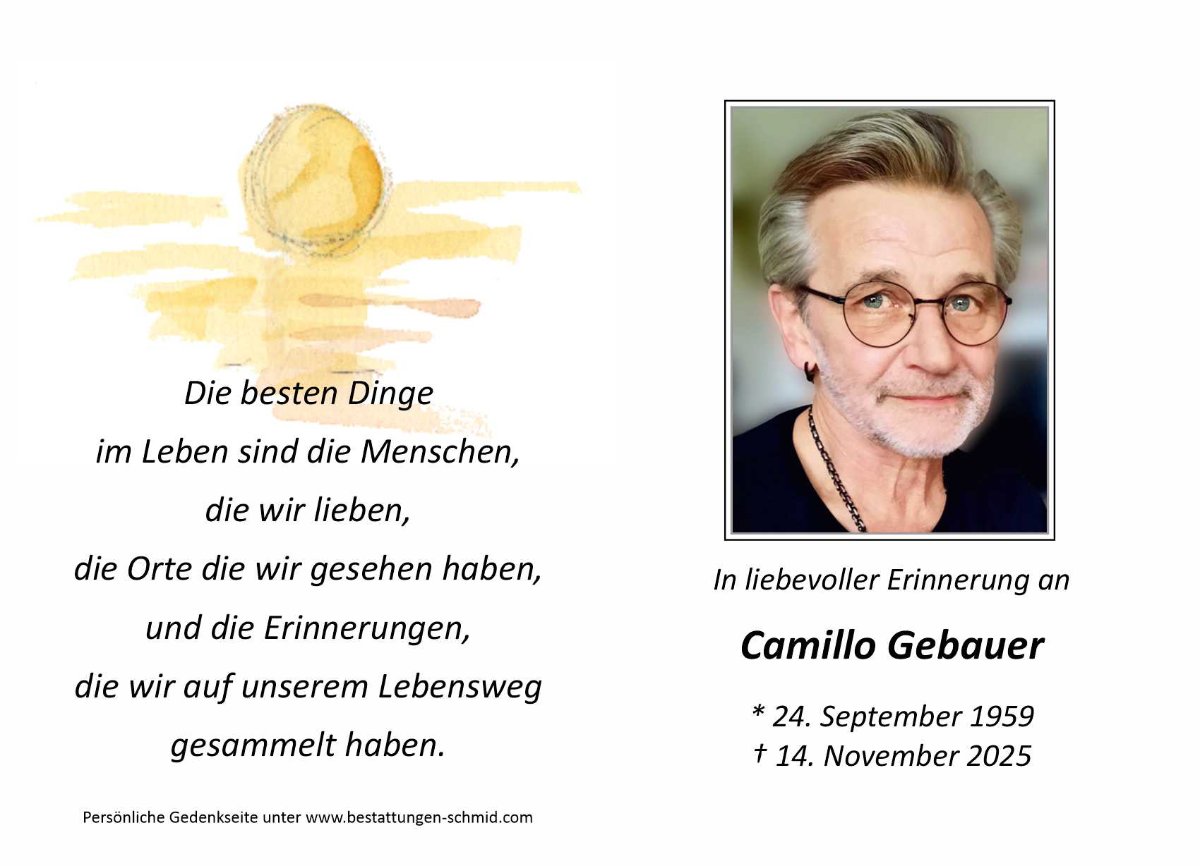 Zum Tode von dem lieben Camillo möchten wir der Familie Gebauer unser herzliches Mitgefühl aussprechen. Wir haben Camillo sehr geschätzt.