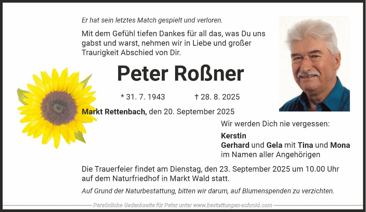 Peter Roßnergestorben am 28. August 2025